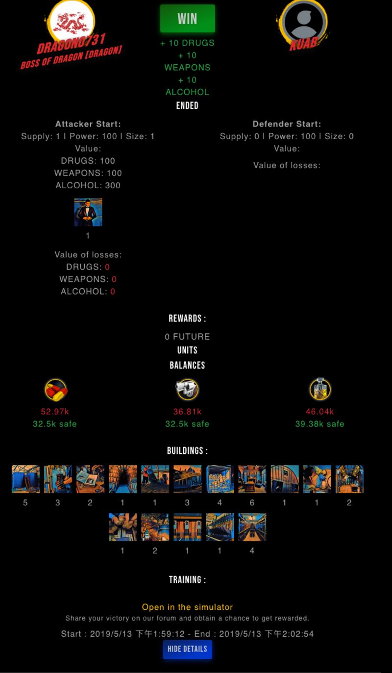 Check my latest fight ! dragon0731 vs kuabm13119140731 (57)in #drugwars-fight • 7 years ago #gaming #fight #dw