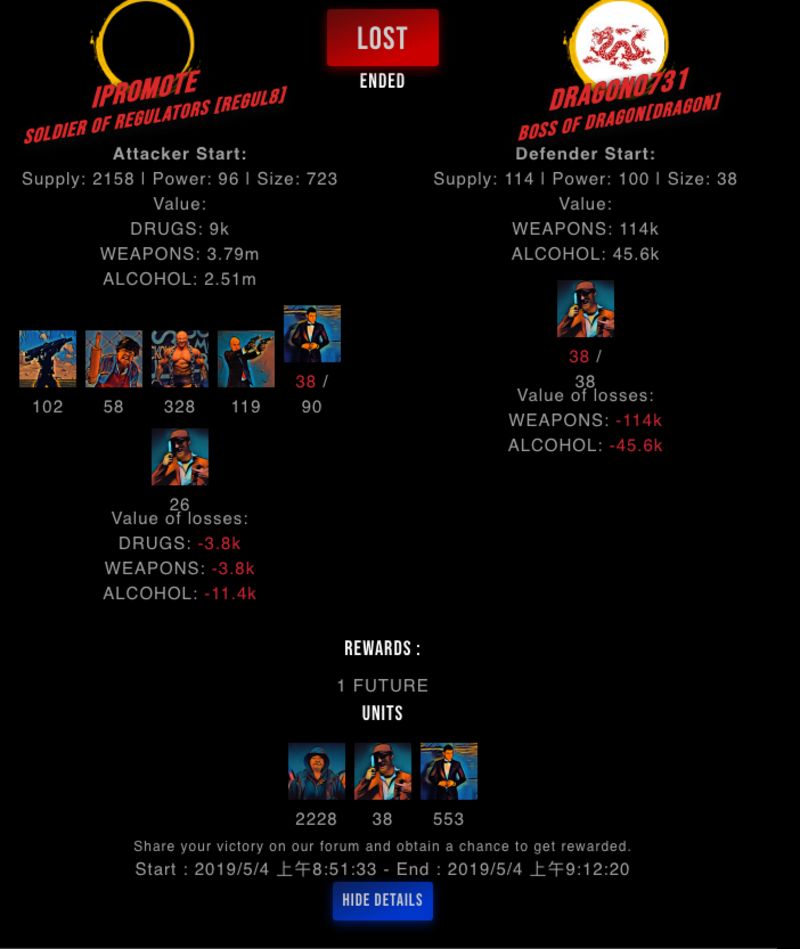 Check my latest fight ! ipromote vs dragon0731m13119140731 (57)in #drugwars-fight • 7 years ago #gaming #fight #dw