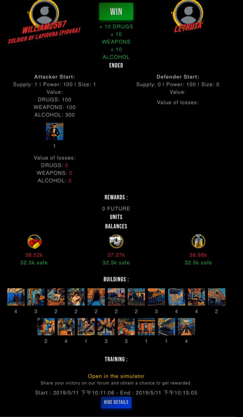 Check my latest fight ! william2567 vs letrutam15197972567 (57)in #drugwars-fight • 7 years ago #gaming #fight #dw