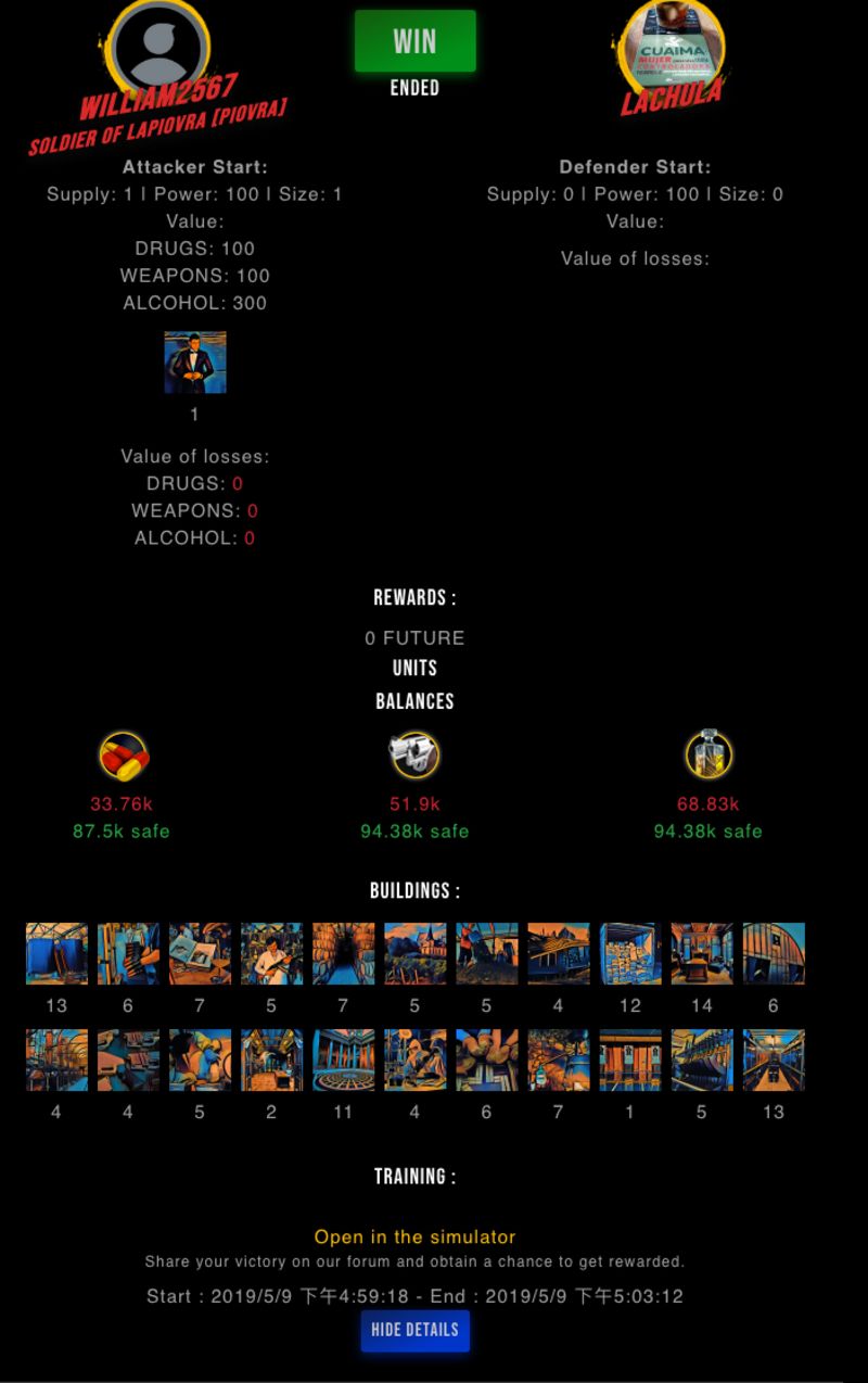Check my latest fight ! william2567 vs lachulam15197972567 (57)in #drugwars-fight • 7 years ago #gaming #fight #dw