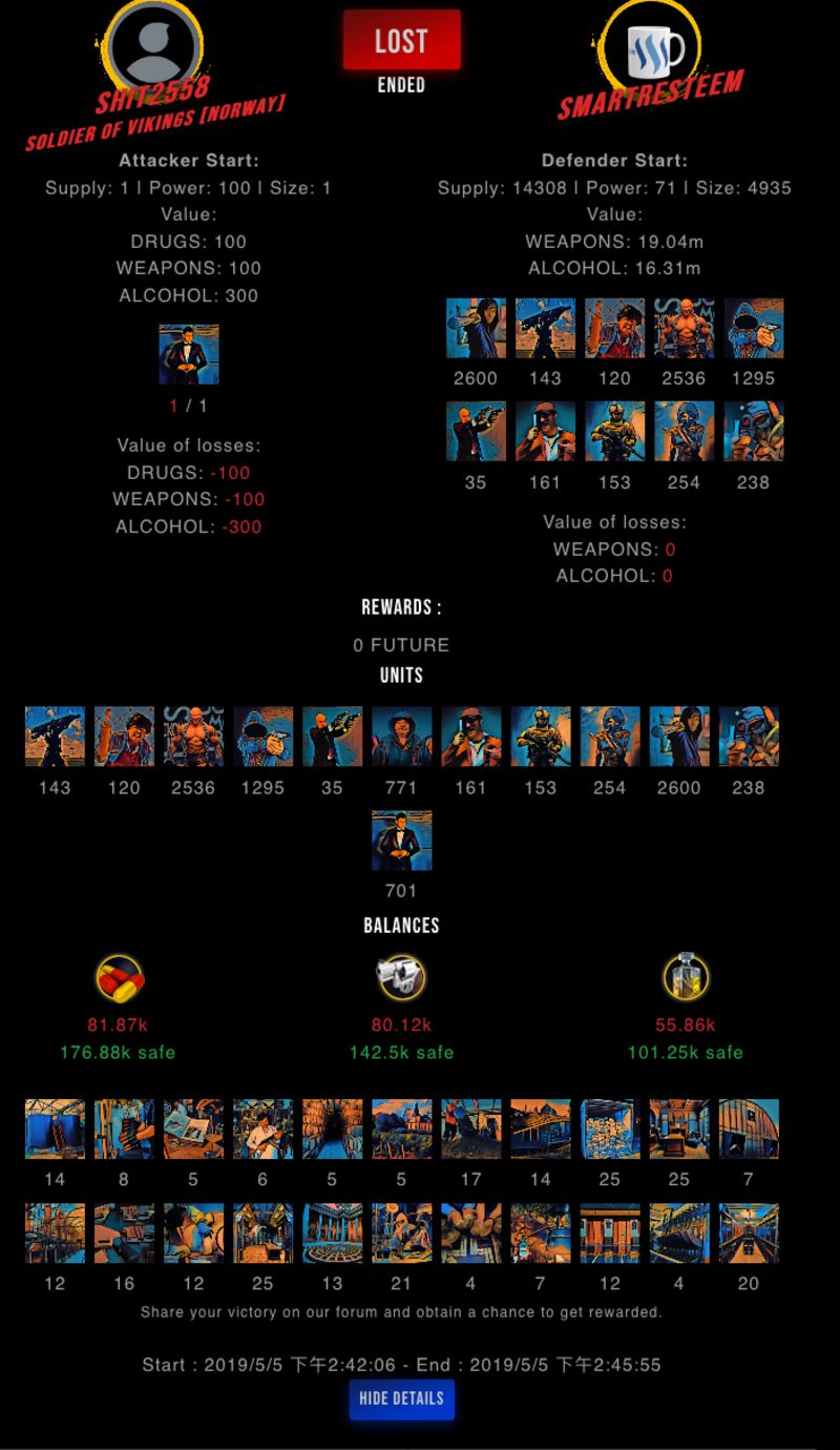 Check my latest fight ! shit2558 vs smartresteemm17674032558 (57)in #drugwars-fight • 7 years ago #gaming #fight #dw