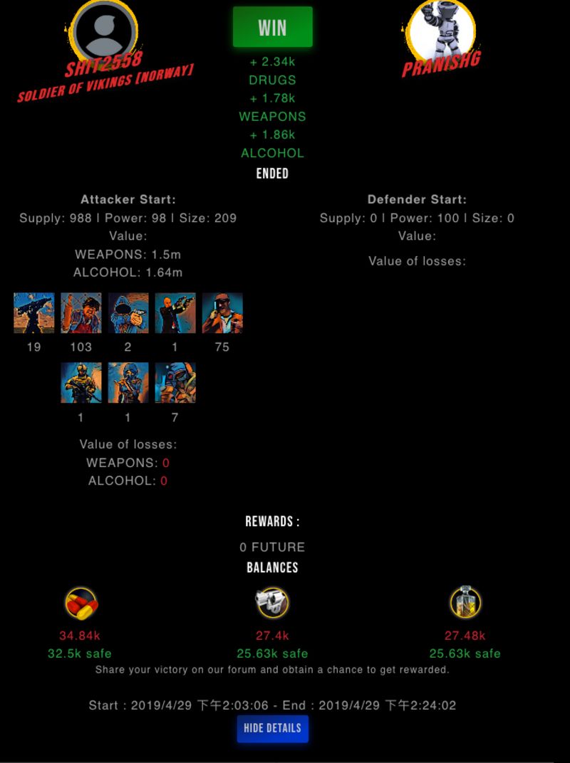 Check my latest fight ! shit2558 vs pranishgm17674032558 (57)in #drugwars-fight • 7 years ago #gaming #fight #dw