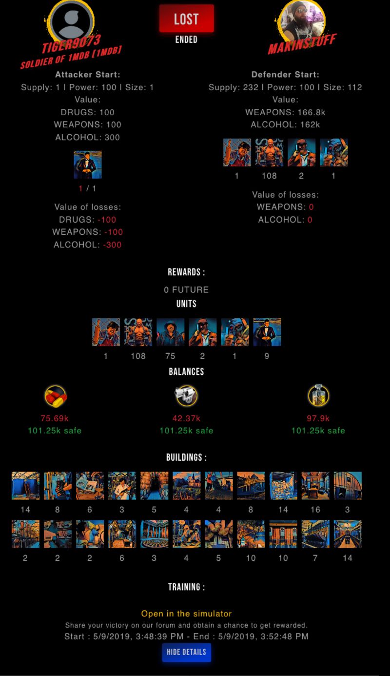 Check my latest fight ! tiger9073 vs makinstuffm18692979073 (57)in #drugwars-fight • 7 years ago #gaming #fight #dw