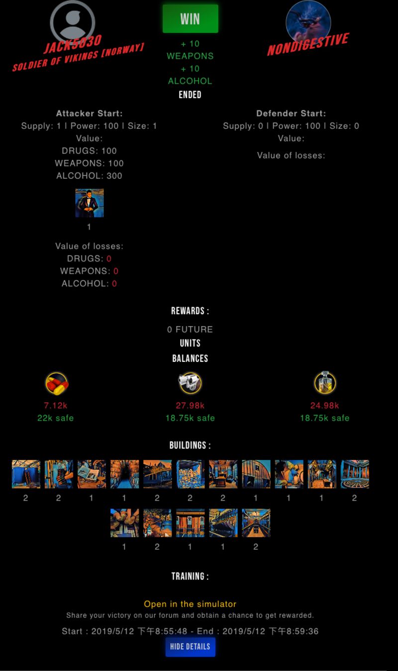 Check my latest fight ! jack5030 vs nondigestivem18773975030 (57)in #drugwars-fight • 7 years ago #gaming #fight #dw