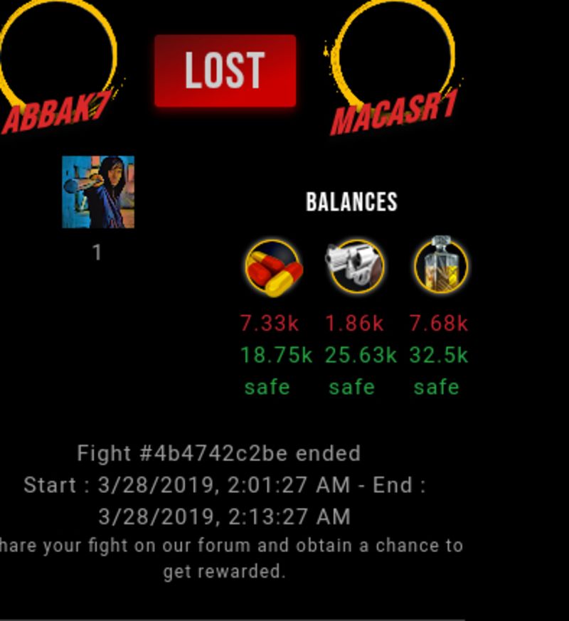 Check my latest fight ! abbak7 vs macasr1macasr1 (33)in #drugwars-fight • 7 years ago #gaming #fight #dw