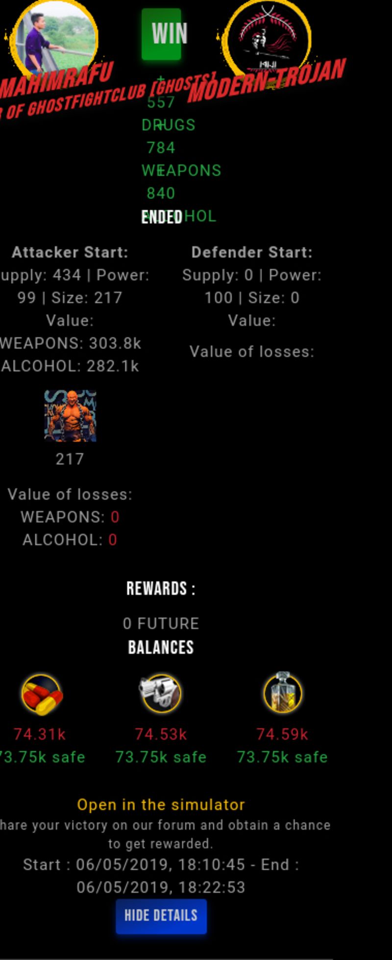 Check my latest fight ! mahimrafu vs modern-trojanmahimrafu (48)in #drugwars-fight • 7 years ago #gaming #fight #dw