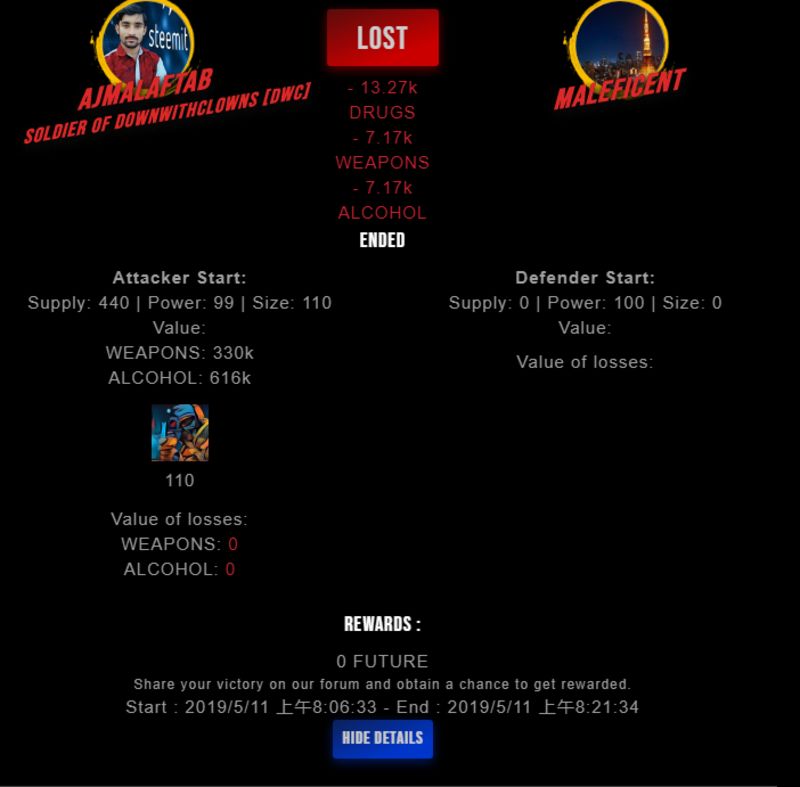 Check my latest fight ! ajmalaftab vs maleficentmaleficent (25)in #drugwars-fight • 7 years ago #gaming #fight #dw