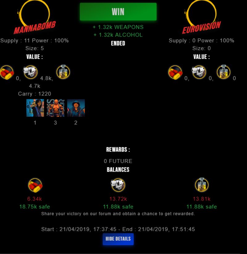 Check my latest fight ! mannabomb vs eurovisionmannabomb (45)in #drugwars-fight • 7 years ago #gaming #fight #dw