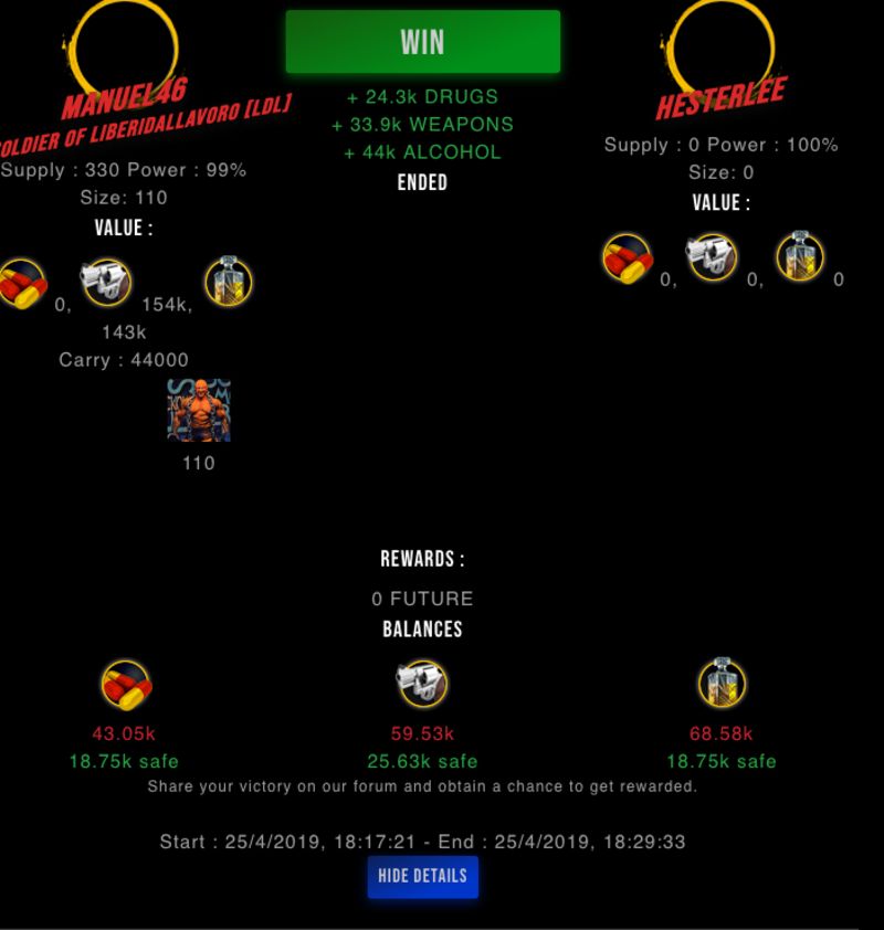 Check my latest fight ! manuel46 vs hesterleemanuel46 (45)in #drugwars-fight • 7 years ago #gaming #fight #dw