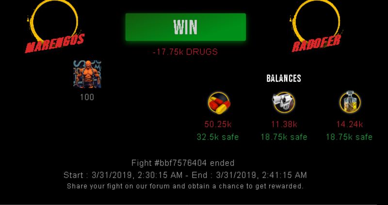 Check my latest fight ! marengos vs radofermarengos (36)in #drugwars-fight • 7 years ago #gaming #fight #dw