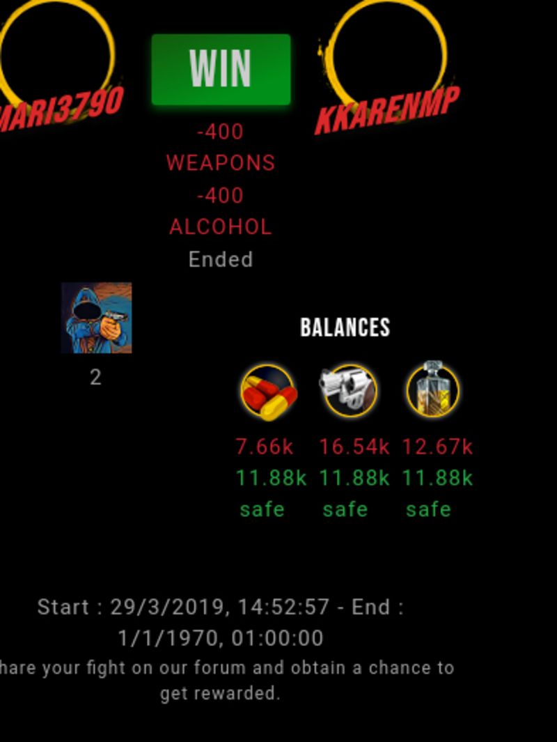 Check my latest fight ! mari3790 vs kkarenmpmari3790 (40)in #drugwars-fight • 7 years ago #gaming #fight #dw