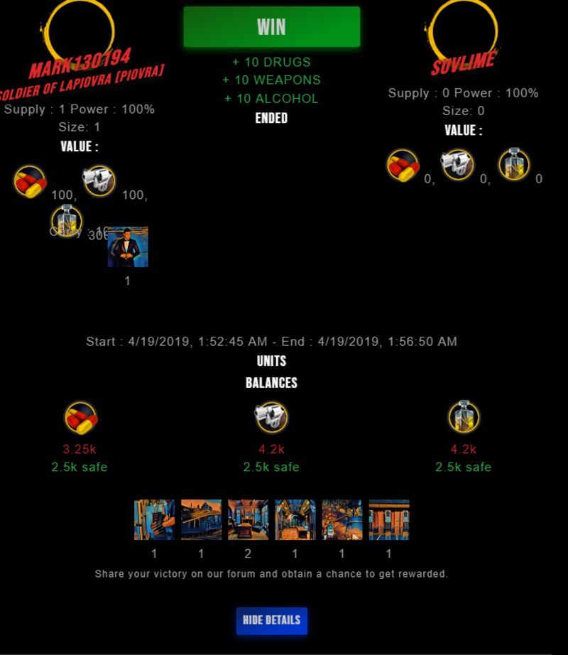 Check my latest fight ! undefined vs undefinedmark130194 (36)in #drugwars-fight • 7 years ago #gaming #fight #dw