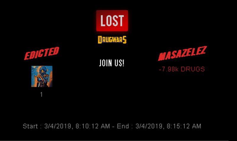 Check my latest fight ! edicted vs masazelezmasazelez (32)in #drugwars-fight • 7 years ago #gaming #fight #dw