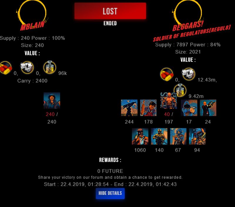 Check my latest fight ! mblain vs beggars!mblain (36)in #drugwars-fight • 7 years ago #gaming #fight #dw