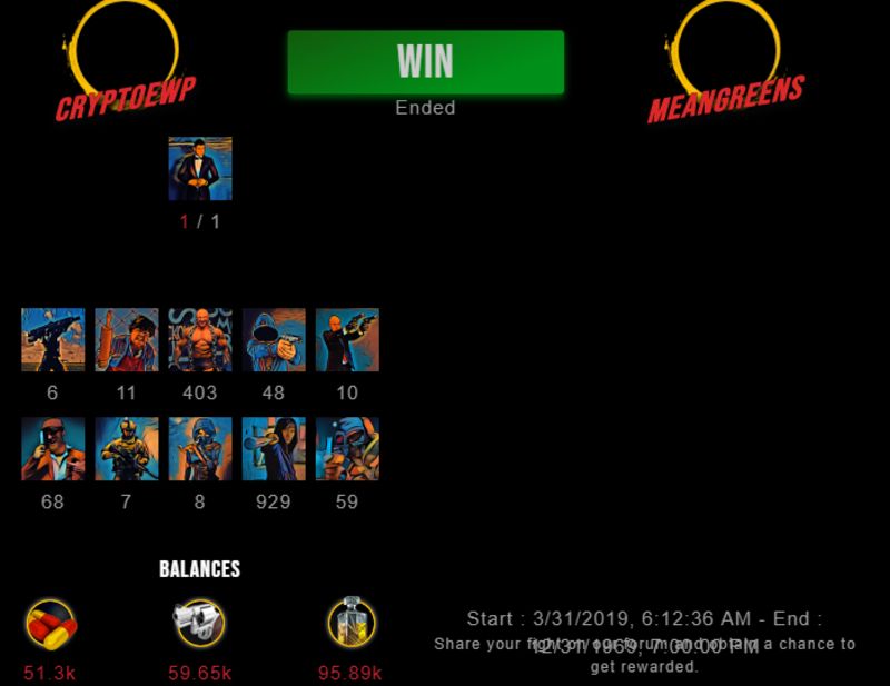 Check my latest fight ! cryptoewp vs meangreensmeangreens (33)in #drugwars-fight • 7 years ago #gaming #fight #dw