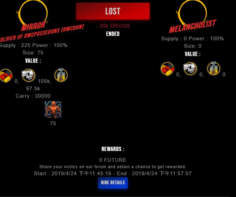 Check my latest fight ! mirror vs melancholistmelancholist (25)in #drugwars-fight • 7 years ago #gaming #fight #dw