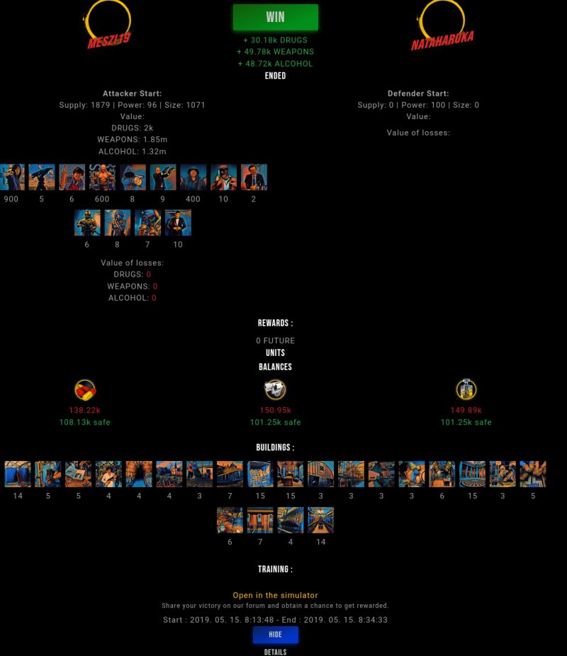Check my latest fight ! meszi19 vs nataharukameszi19 (52)in #drugwars-fight • 7 years ago #gaming #fight #dw
