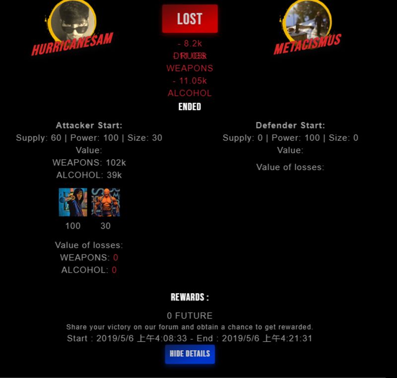 Check my latest fight ! hurricanesam vs metacismusmetacismus (26)in #drugwars-fight • 7 years ago #gaming #fight #dw