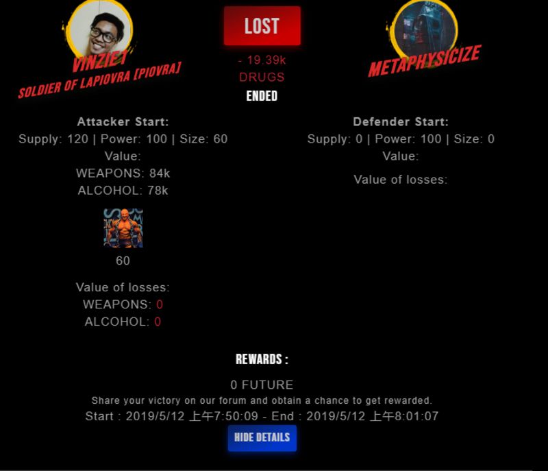 Check my latest fight ! vinzie1 vs metaphysicizemetaphysicize (26)in #drugwars-fight • 7 years ago #gaming #fight #dw