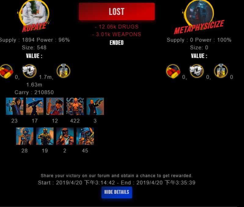 Check my latest fight ! kopaye vs metaphysicizemetaphysicize (26)in #drugwars-fight • 7 years ago #gaming #fight #dw