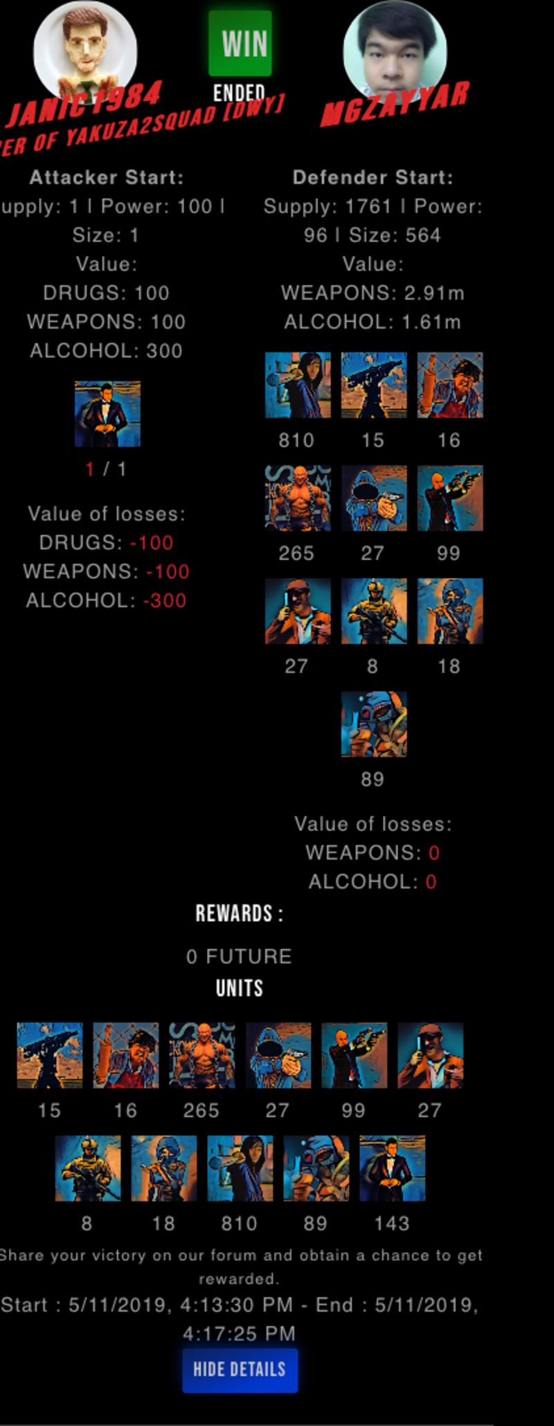 Check my latest fight ! janic1984 vs mgzayyarmgzayyar (56)in #drugwars-fight • 7 years ago #gaming #fight #dw
