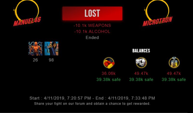 Check my latest fight ! manuel46 vs microtronmicrotron (25)in #drugwars-fight • 7 years ago #gaming #fight #dw