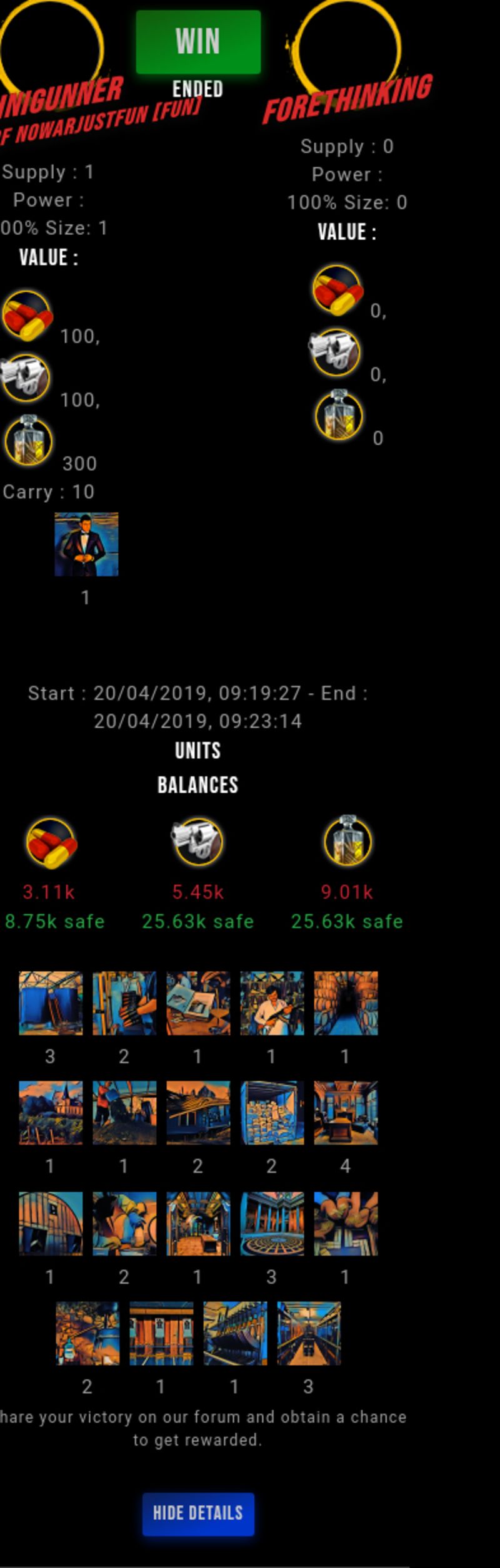Congratulations @minigunner ! Your fight received an upvote of 3.6% from the King Dealer as incentive for your activity and as a gratitude for your support to the game.