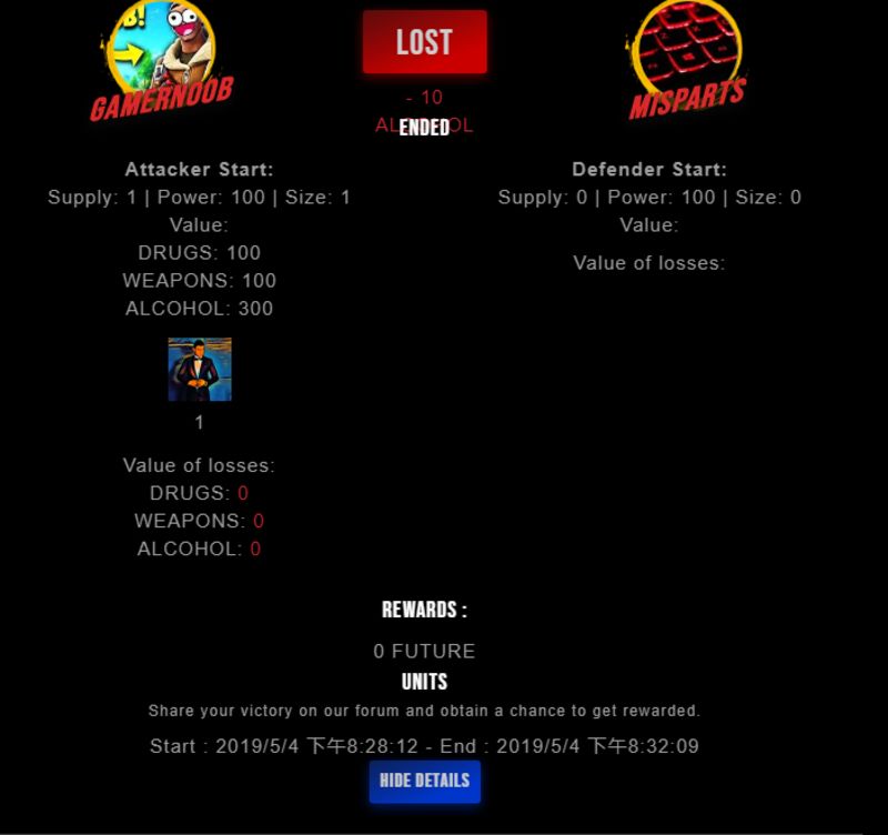 Congratulations @misparts ! Your fight received an upvote of 10% from the Dealer as incentive for your activity and as a gratitude for your support to the game.