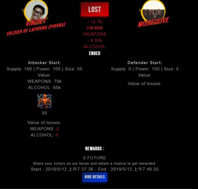 Congratulations @misreceive ! Your fight received an upvote of 10% from the Dealer as incentive for your activity and as a gratitude for your support to the game.