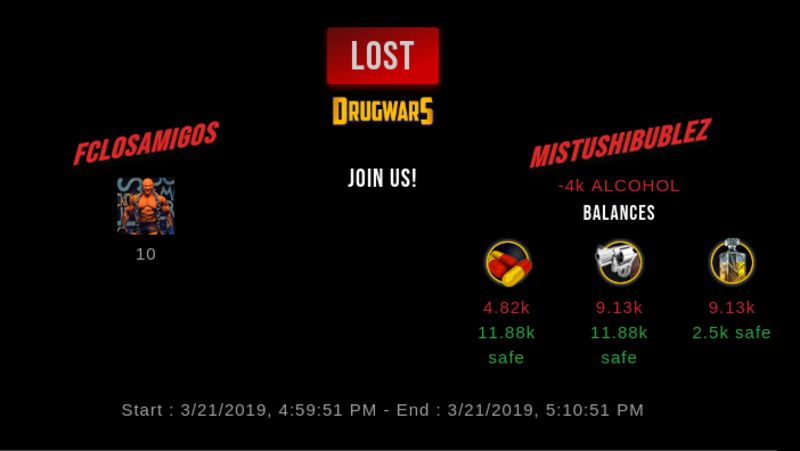 Check my latest fight ! fclosamigos vs mistushibublezmistushibublez (25)in #drugwars-fight • 7 years ago #gaming #fight #dw
