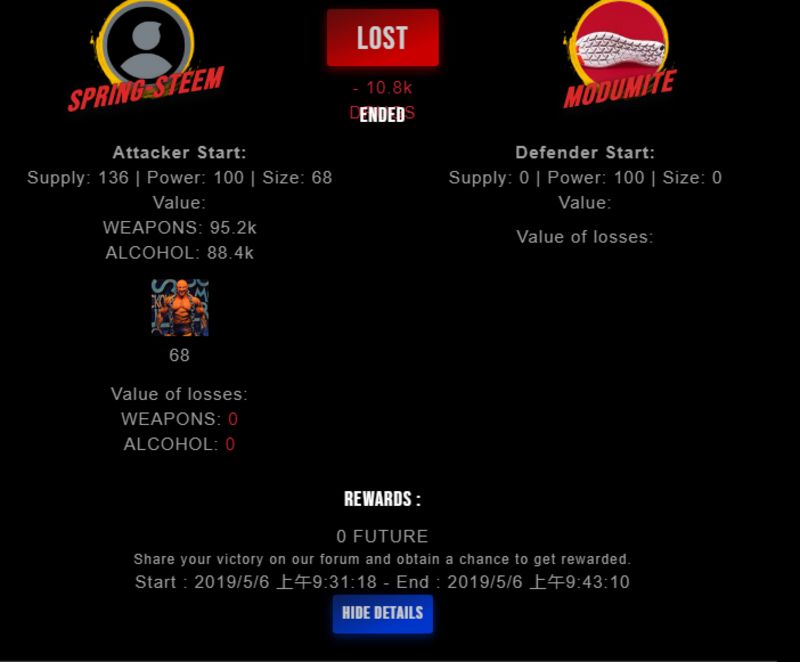 Check my latest fight ! spring-steem vs modumitemodumite (25)in #drugwars-fight • 7 years ago #gaming #fight #dw