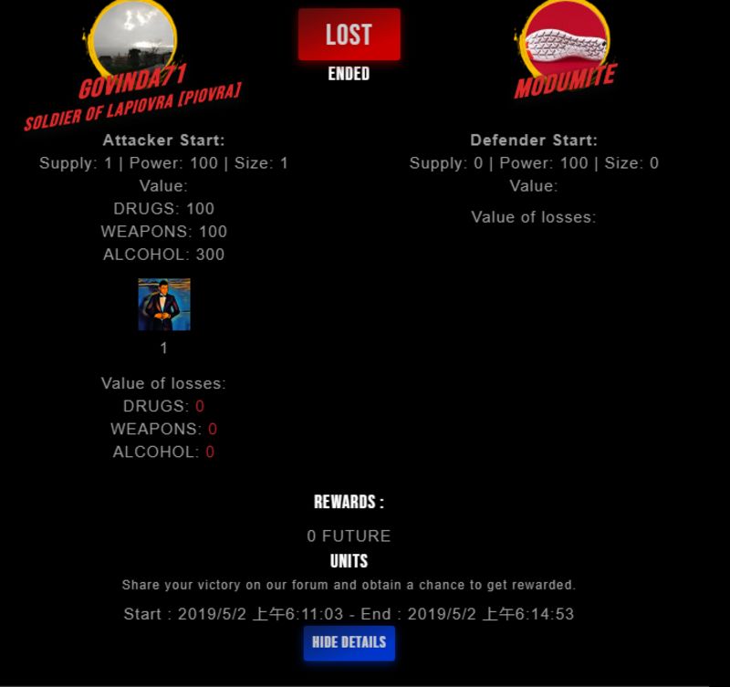 Check my latest fight ! govinda71 vs modumitemodumite (25)in #drugwars-fight • 7 years ago #gaming #fight #dw