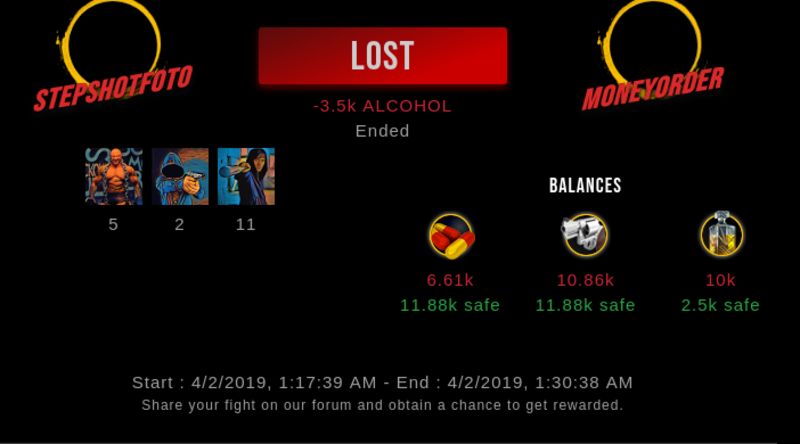 Check my latest fight ! stepshotfoto vs moneyordermoneyorder (25)in #drugwars-fight • 7 years ago #gaming #fight #dw