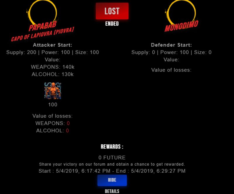 Congratulations @monodimo ! Your fight received an upvote of 1.8% from the King Dealer as incentive for your activity and as a gratitude for your support to the game.