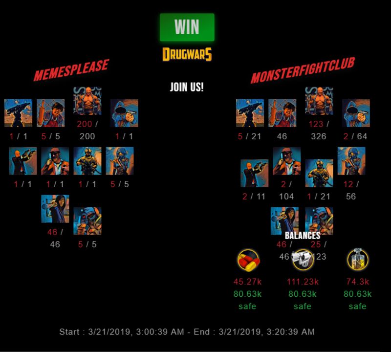 Check my latest fight ! memesplease vs monsterfightclubmonsterfightclub (42)in #drugwars-fight • 7 years ago #gaming #fight #dw