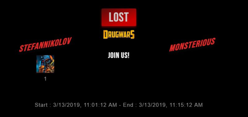Check my latest fight ! stefannikolov vs monsteriousmonsterious (26)in #drugwars-fight • 7 years ago #gaming #fight #dw