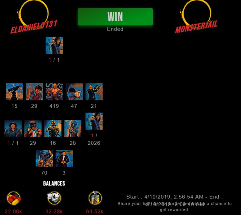 Check my latest fight ! eldaniel0131 vs monsterjailmonsterjail (31)in #drugwars-fight • 7 years ago #gaming #fight #dw
