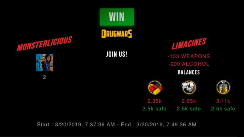Check my latest fight ! monsterlicious vs limacinesmonsterlicious (25)in #drugwars-fight • 7 years ago #gaming #fight #dw