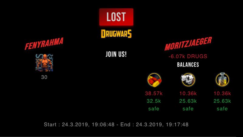 Check my latest fight ! fenyrahma vs moritzjaegermoritzjaeger (45)in #drugwars-fight • 7 years ago #gaming #fight #dw
