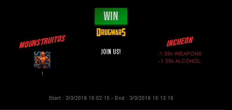 Check my latest fight ! mounstruitos vs incheonmounstruitos (31)in #drugwars-fight • 7 years ago #gaming #fight #dw