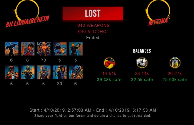 Check my latest fight ! billionairehein vs mttinamttina (34)in #drugwars-fight • 7 years ago #gaming #fight #dw
