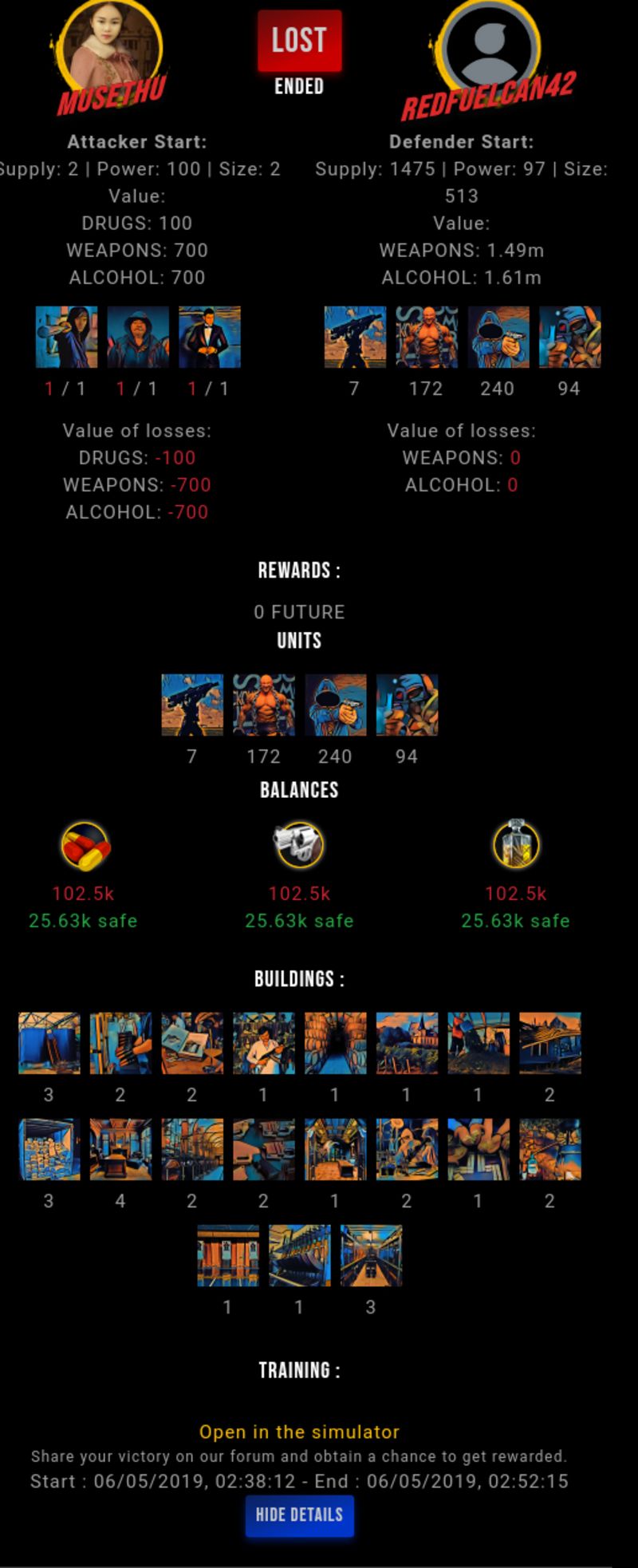 Check my latest fight ! musethu vs redfuelcan42musethu (2)in #drugwars-fight • 7 years ago #gaming #fight #dw