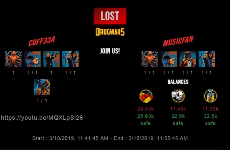 Check my latest fight ! c0ff33a vs musicfanmusicfan (46)in #drugwars-fight • 7 years ago #gaming #fight #dw