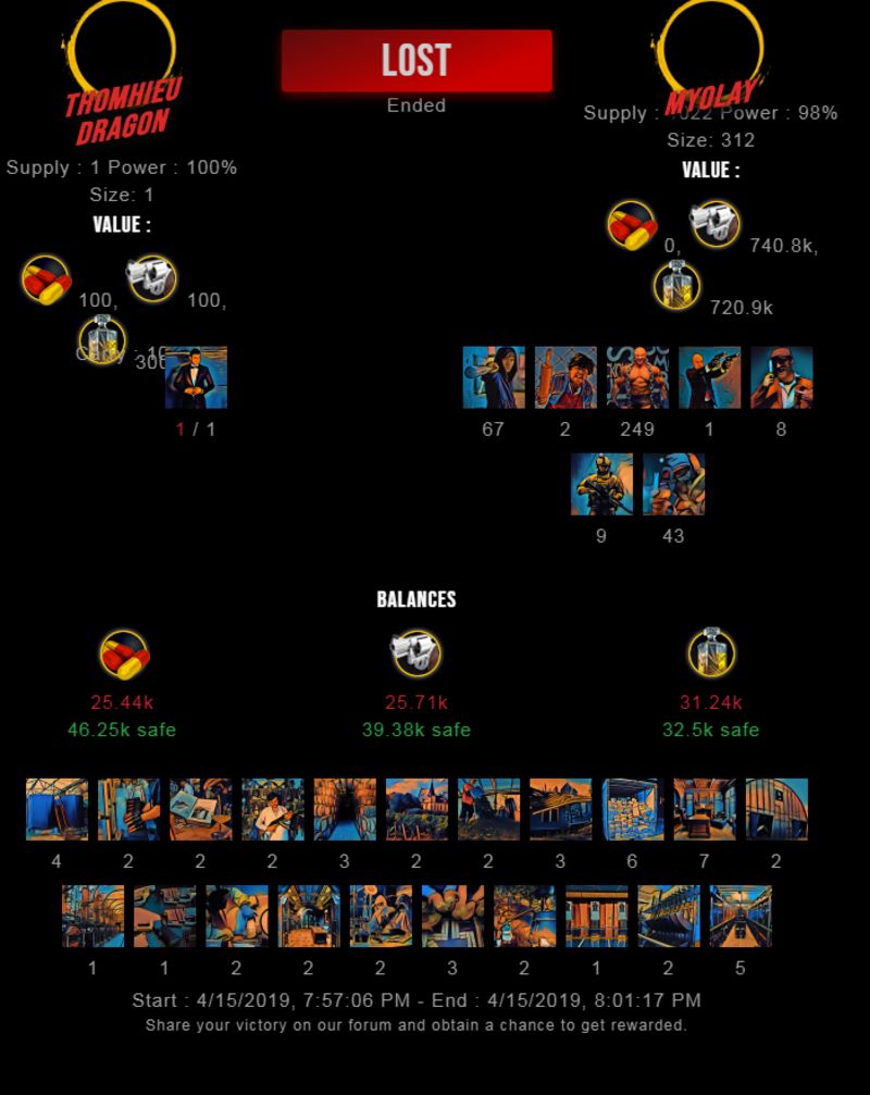 Congratulations @myolay ! Your fight received an upvote of 5% from the Dealer as incentive for your activity and as a gratitude for your support to the game.