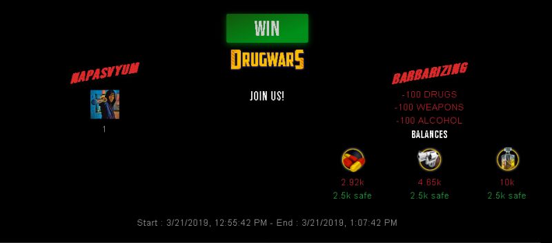 Check my latest fight ! napasvyum vs barbarizingnapasvyum (29)in #drugwars-fight • 7 years ago #gaming #fight #dw