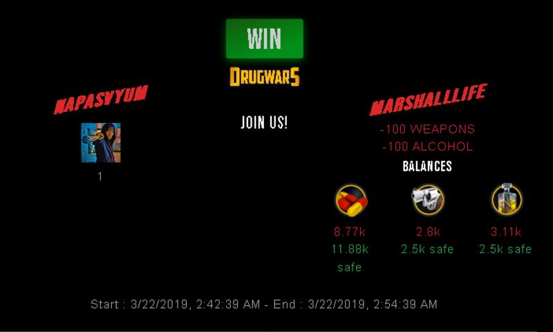 Check my latest fight ! napasvyum vs marshalllifenapasvyum (29)in #drugwars-fight • 7 years ago #gaming #fight #dw