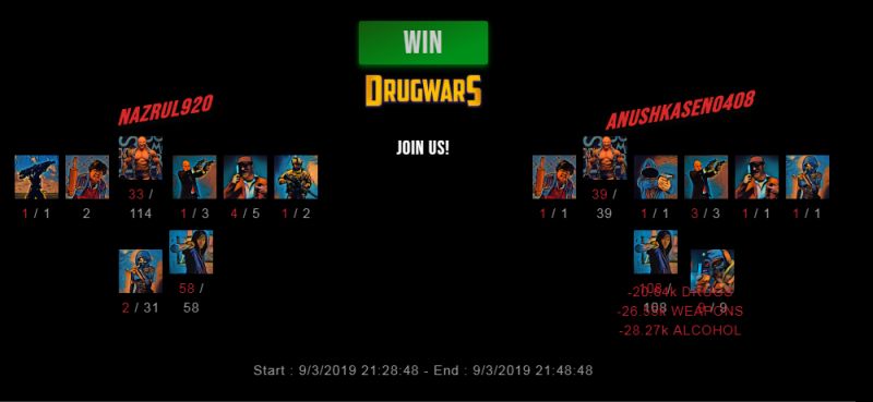 Check my latest fight ! nazrul920 vs anushkasen0408nazrul920 (33)in #drugwars-fight • 7 years ago #gaming #fight #dw