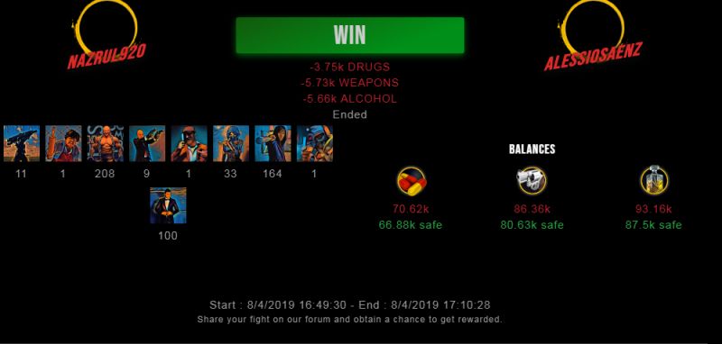Check my latest fight ! nazrul920 vs alessiosaenznazrul920 (33)in #drugwars-fight • 7 years ago #gaming #fight #dw