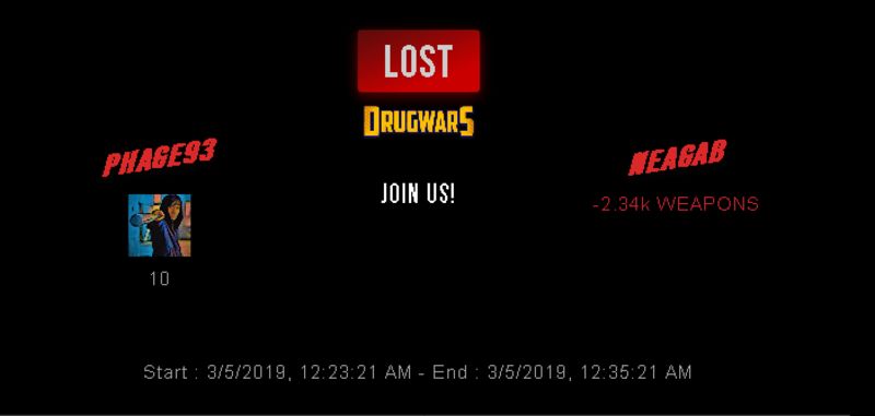Check my latest fight ! phage93 vs neagabneagab (25)in #drugwars-fight • 7 years ago #gaming #fight #dw