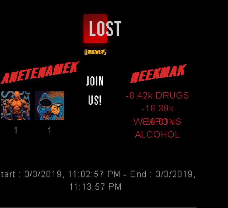 Check my latest fight ! planetenamek vs neekmakneekmak (25)in #drugwars-fight • 7 years ago #gaming #fight #dw